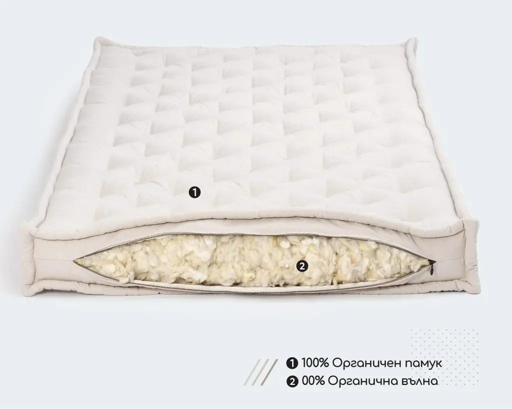 Двулицев матрак с органична GOTS вълна от Home of Wool с текстил от памук.